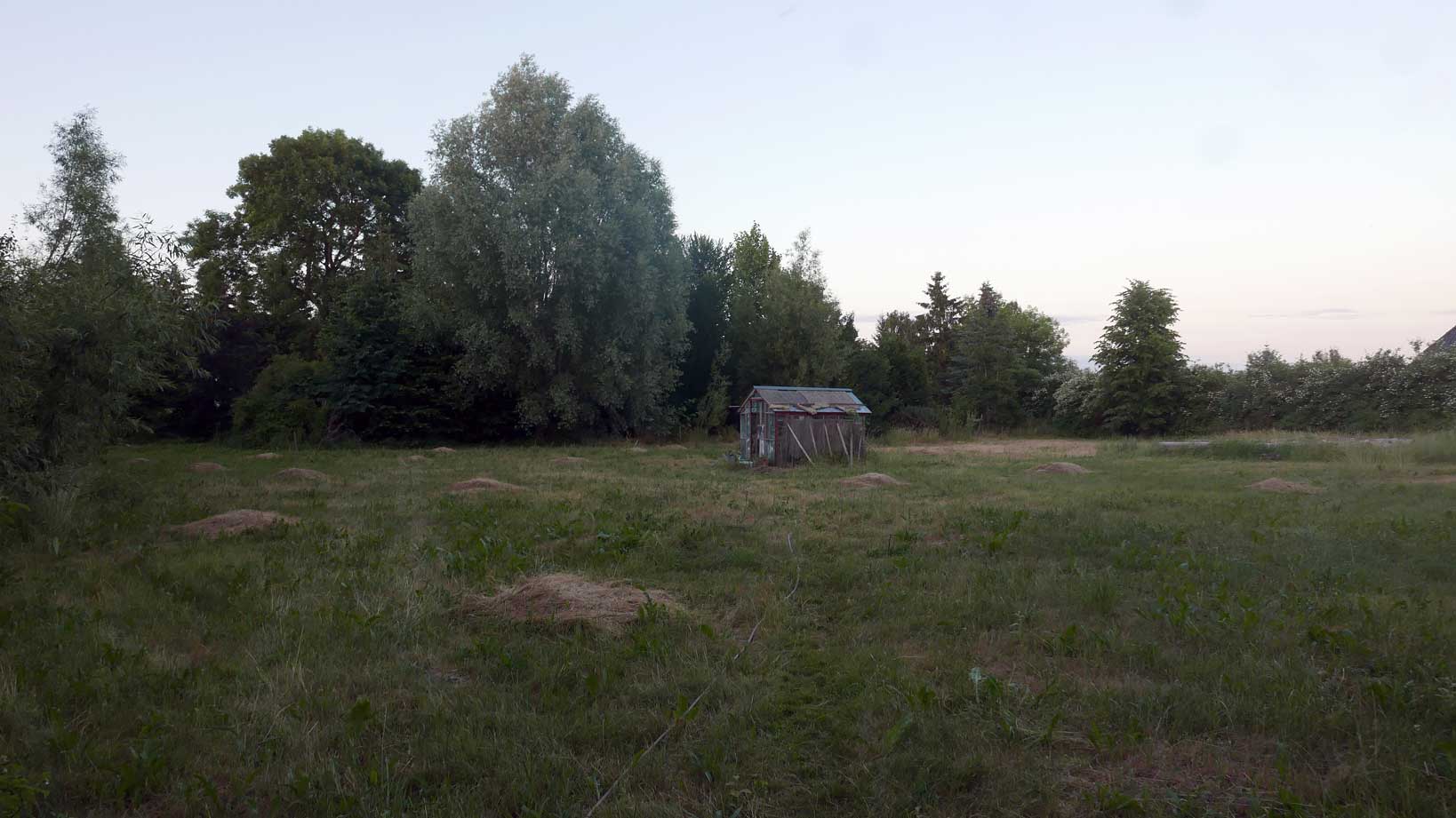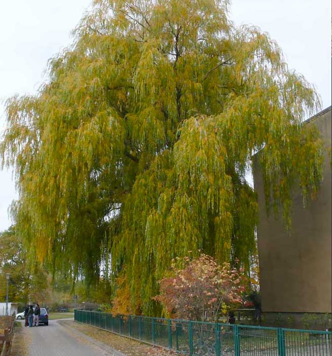 die Weide fällt noch vor dem Gebäude nun ohne Grund