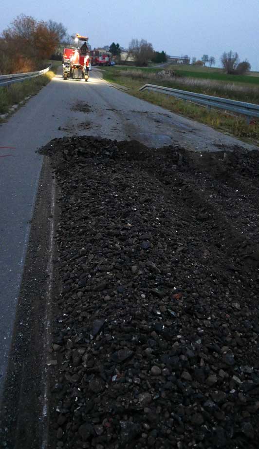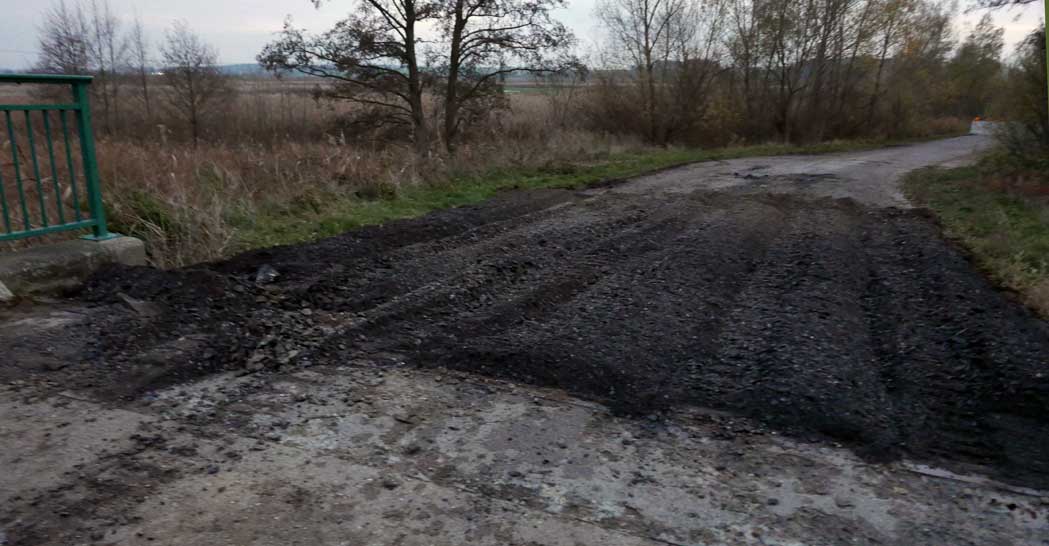 dort war der Übergang zur Brücke weggesackt, fast 10 cm Höhenunterschied, genug um sich mit dem Auto die Felge kaputt zu fahren, das Eine hat wohl mit dem anderen nichts zu tun ?!