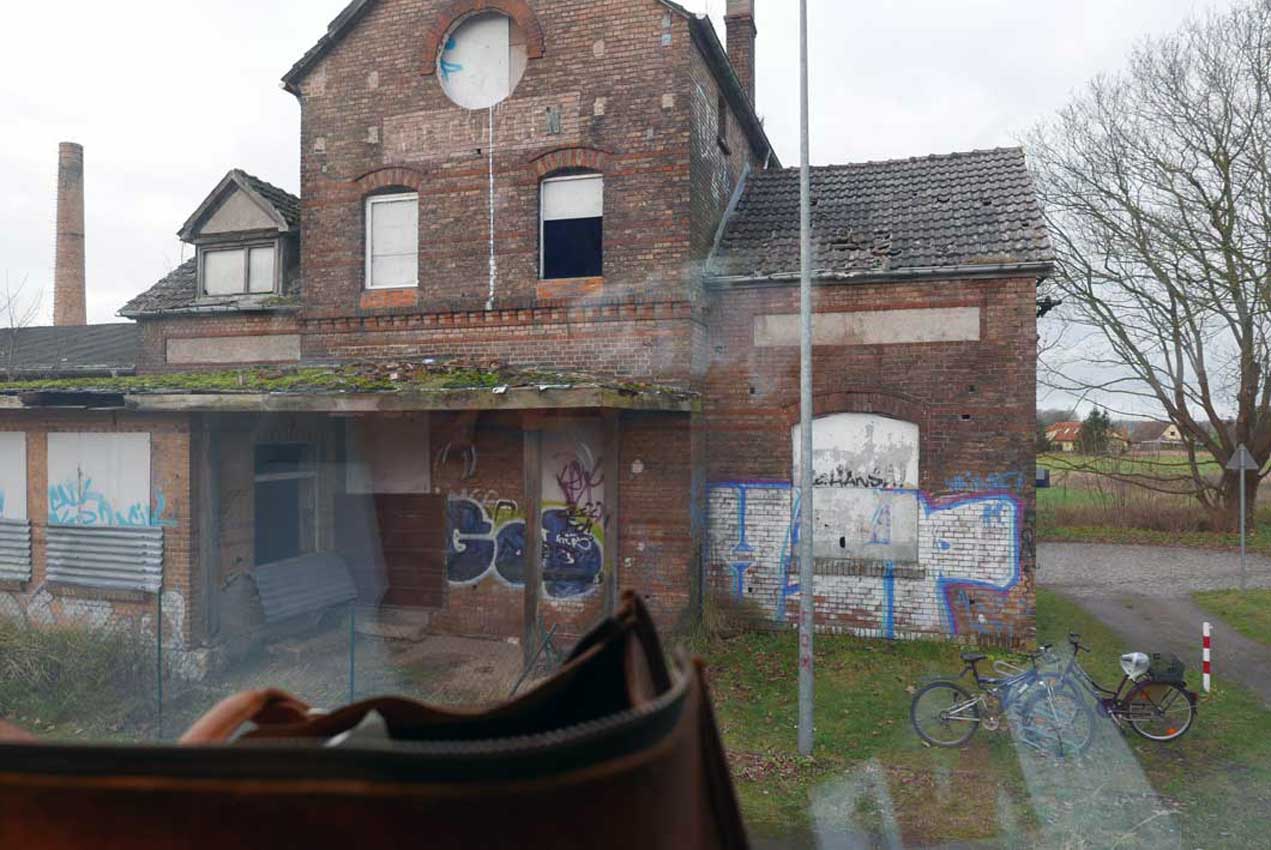 Das ind nicht alle Häuser der Gäste verlassen und zugemauer, Fenster und Türen, was für ein Anblick der Verachtunh und Artefakt. Underer Zeit, Das Äussere als Mentekel Überzogen mit Signalen, die keiner mehr versteht oder wahrhaben will. Als Zeichen derer, die hier Verantwortung meiden ein schönes Beipiel. Man höre die Stuimmen Menschen hier, die noch leben. Der Verantwortliche für die Fäälung der 120 Pappeln von Volksdorf, eine ganze Allee, ist auch zuständig in Demmin für Umwelt, der kapitale Bock im Garten ohne Herrn, denn den hat man endlich hinter sich, und so sind sie unter sich. Zu dieser Misere haben wir von noch nicht gehört. Keine Information der Menschen, keine Pläne , keine Verhandlunge mit der Bahn. Wwe hierher kommen will, muss da durch, und was heisst das alles, sagt was über die hier Gewählten Vertreter der Bürger. Was aber macht es mit den Meschen hier, in ihrem Inneren hier.