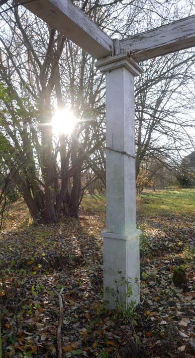 zu seinem Gedächtnis auch diese Hütte imLaub und Ernte des Ganzen