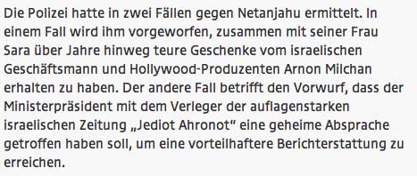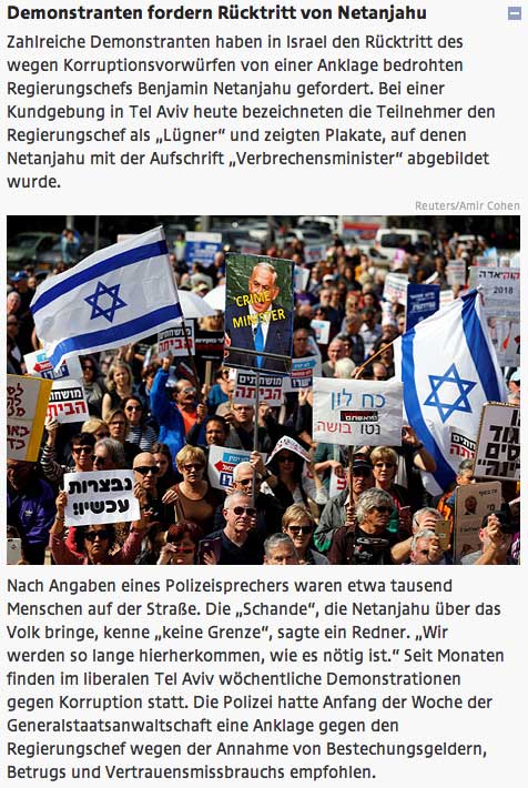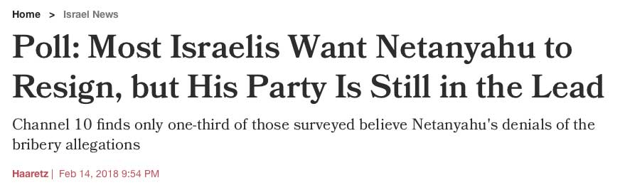 The Israeli prime minister, who's still standing after the police recommended charging him with bribery, fraud and breach of trust,