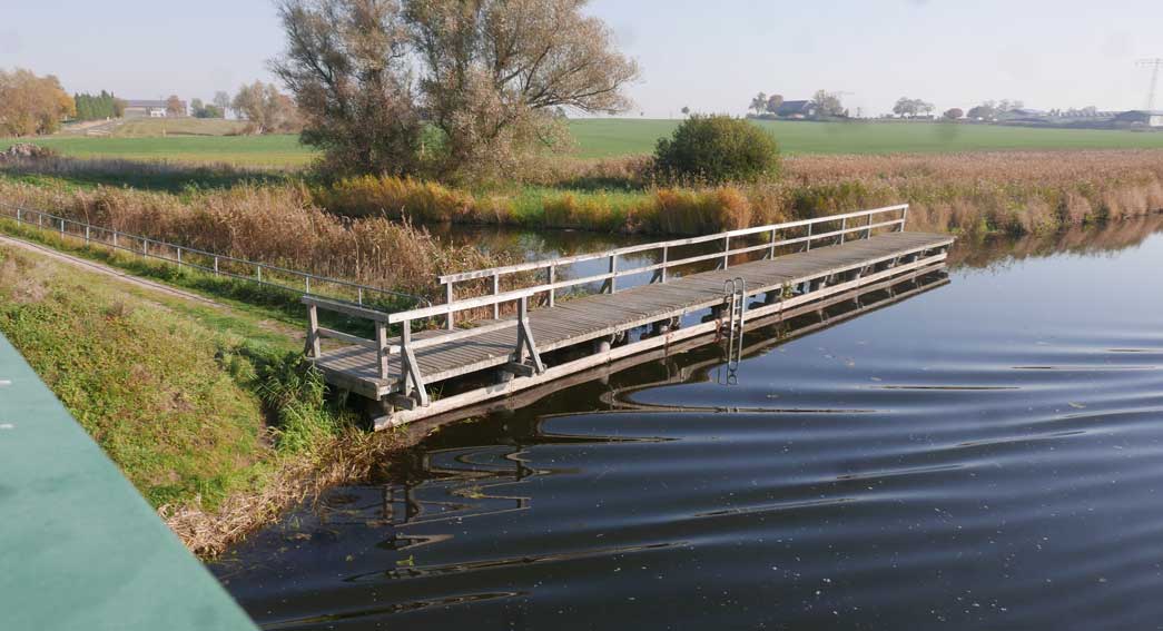 gegenüber das Ufer mit hölzernen Anlagen zeigt wie man das machen kann. War verboten. da privat und wegen Schutz der Umwelt.