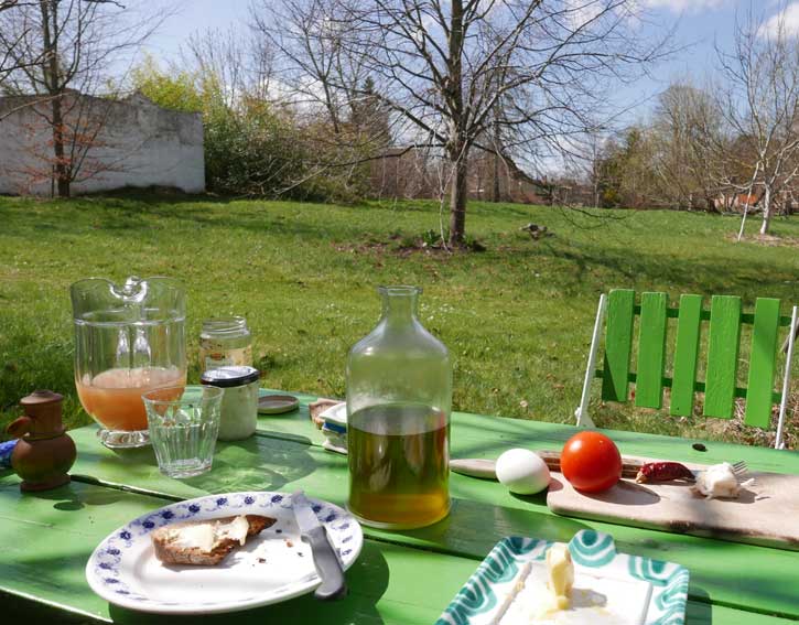 erste Mal draussen Frühstück