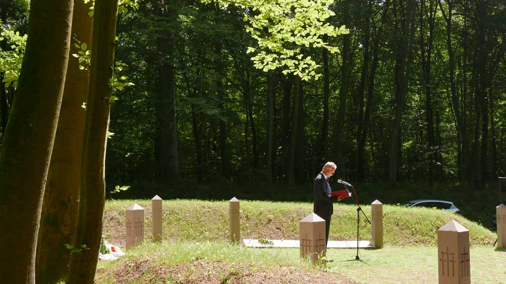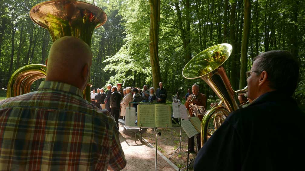 Im Woldeforst die Einweihung eines Denkmals für die Toten des Lagers während des letzten Krieges.