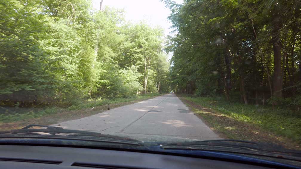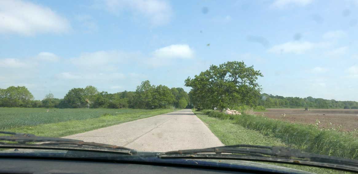 Die betonierte Strasse gerade und ordentlich nach Art einspuriger Autobahn zeigt aus welcher Zeit und für welchen Zweck sie gebaut wurde.