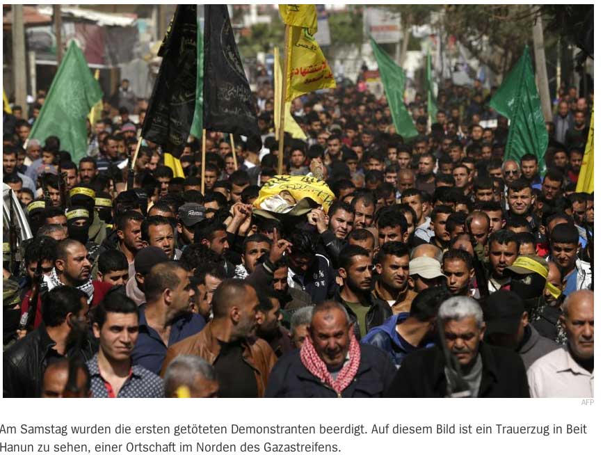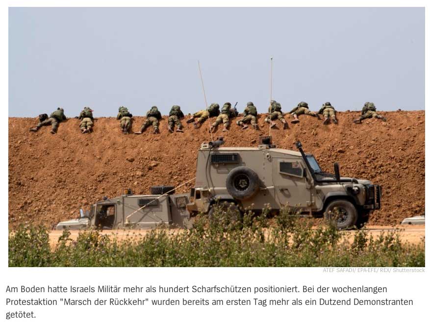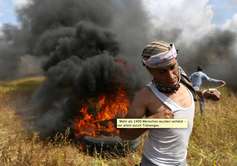 Tel Aviv (dpa). Nach den tödlichen Schüssen israelischer Soldaten auf 15 Palästinenser bei Massenprotesten im Gazastreifen hat die Regierung das Vorgehen der Armee an der Grenze des Küstengebietes verteidigt. „Der Sperrzaun zwischen Israel und dem Gazastreifen trennt zwischen einem souveränen Staat und einer Terrororganisation“, erklärte das Außenministerium. Ministerpräsident Benjamin Netanjahu sagte: „Israel geht mit Entschlossenheit vor, um seine Solidarität und die Sicherheit seiner Bürger zu schützen.“