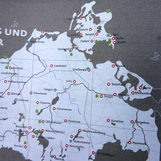 Vorpommern, Demmin auf der Karte des Kultursommers von MV ohne Markierung. in weissem Feld der Ereignisse . Und ihr Drang noch Events. Verwaist nun doppelt. Da ziehen sie rum und feiern sich bunt. Vorpommern in jedem Mai gehts los. Das lassen sie sich nicht nehmen. Und das interssiert die Politik schon lange nicht mehr ausser in polizeilichen Massnahmen.