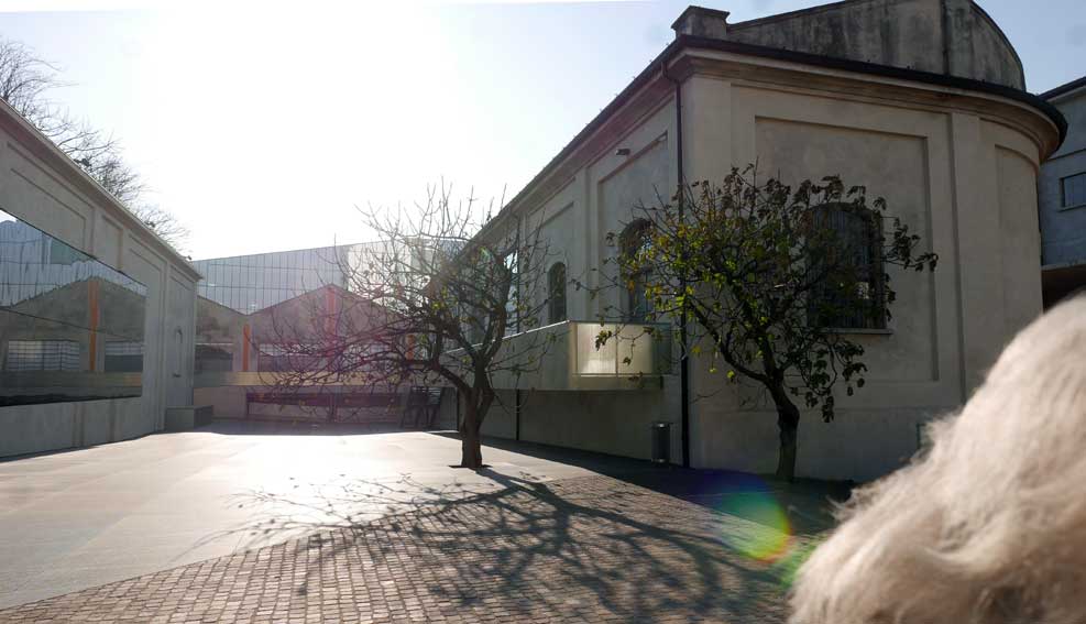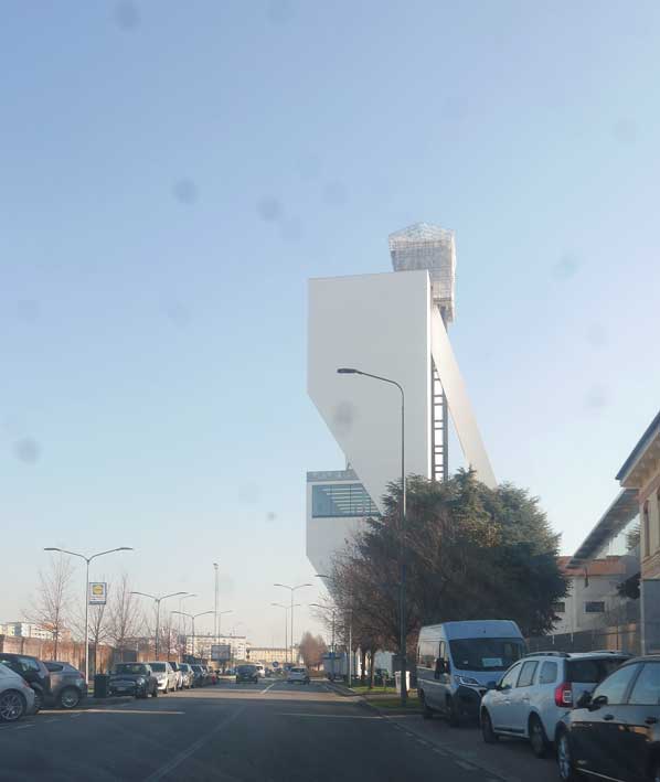 Wer sich der Fondatione Prada als Ausstellungspark nähert, wird zuerst den neuen Turm sehen.