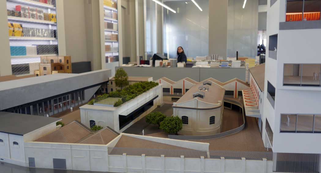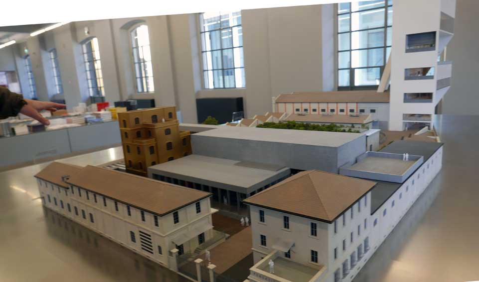 das Modell in der Eingangshalle zeigt die Übersicht den alten und neuen Gebäude