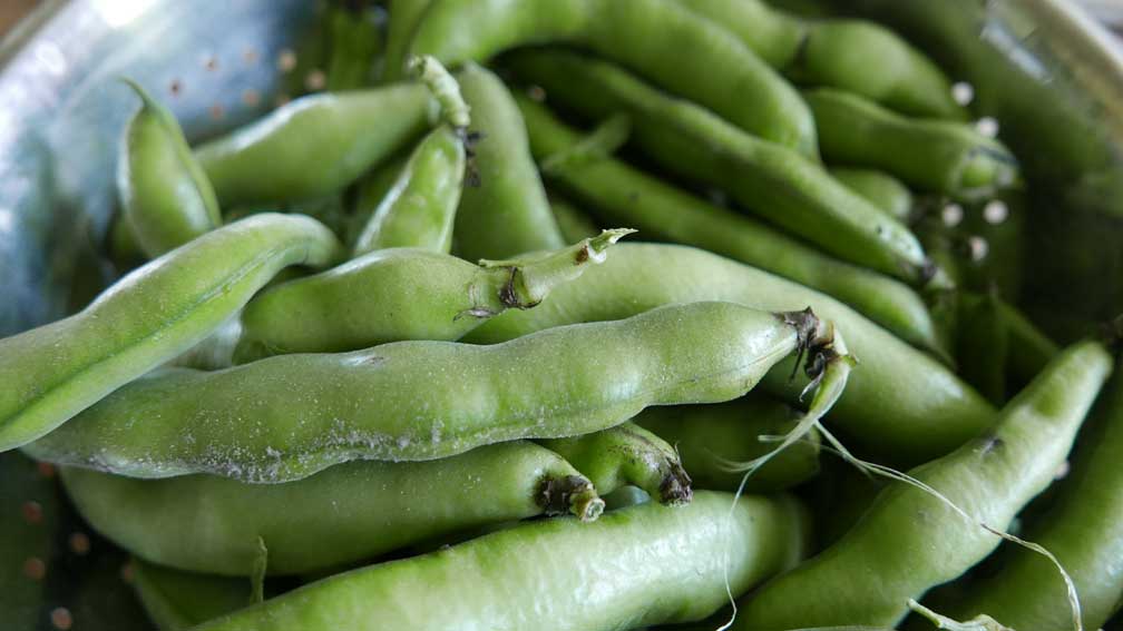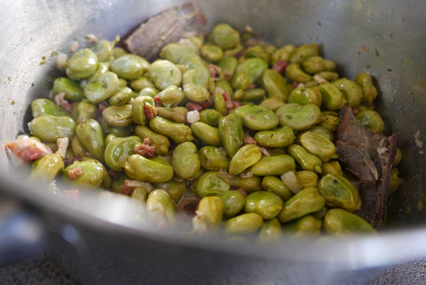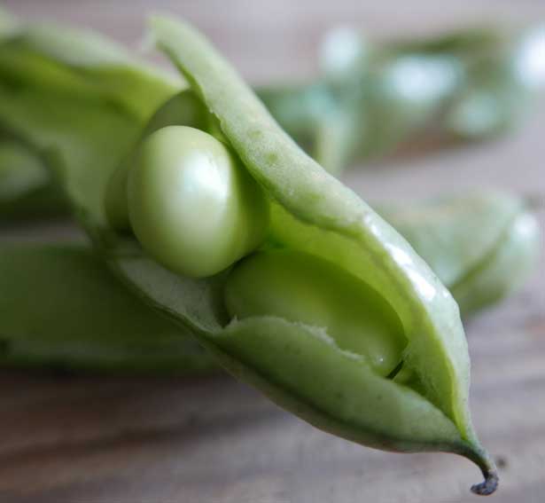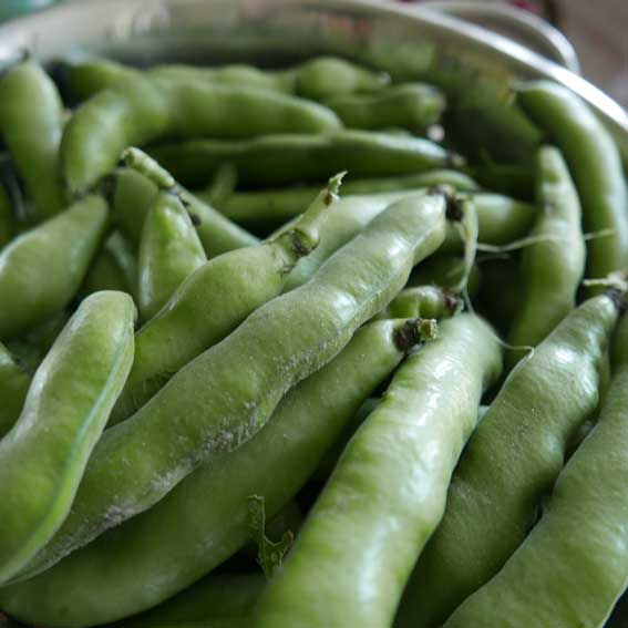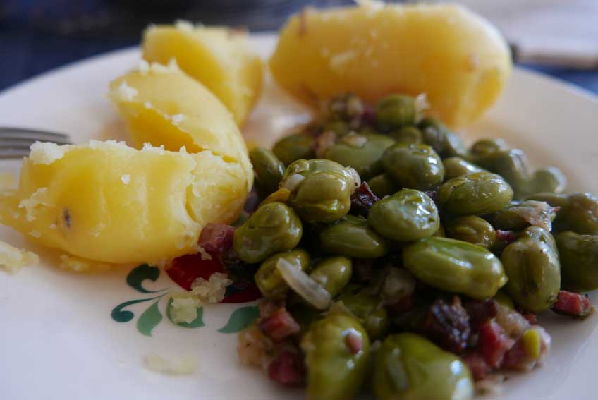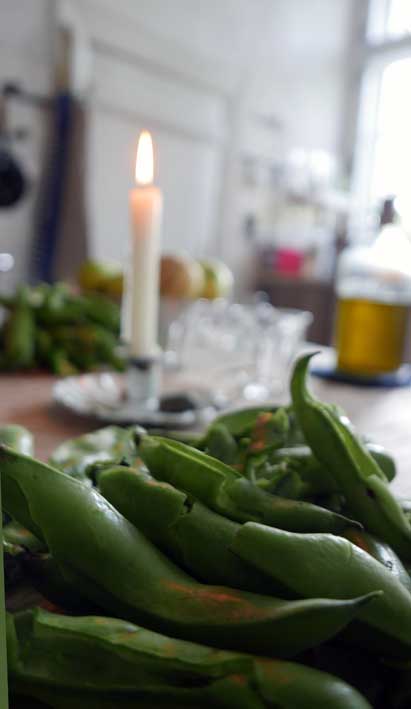 diese dicken Bohnen, sonst auf dem Markt verschwunden, hier noch gerettet, aus den Samen selbst gezogen