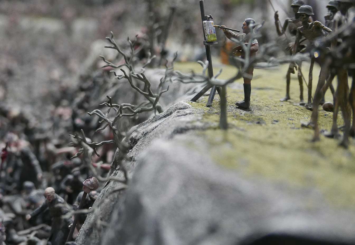 und nun der Künstler vor dem Abgrund seiner Toten, den selbstverschuldeten, heitere Bilder malend.