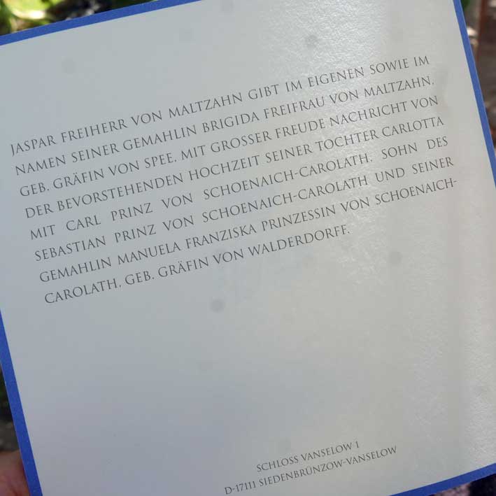 Hochzeit nach der Kirche Maltzahn-Schönaich-Carolath