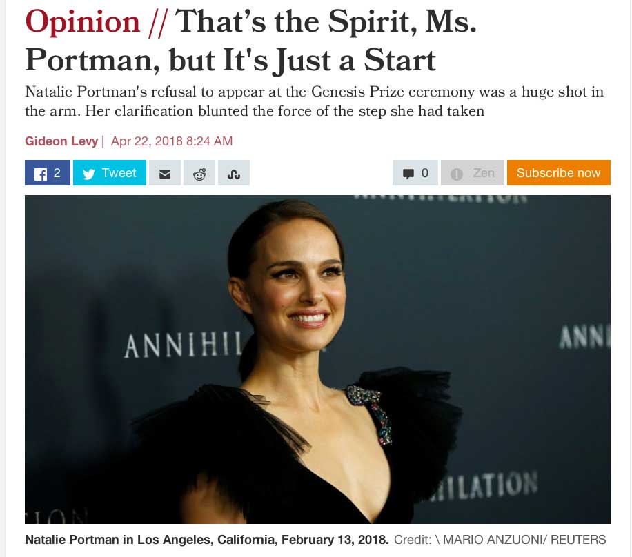 I humbly take my hat off to you for your courage, Ms. Portman. Your direction is the right one; without a tailwind from people like you, nothing here will change. But its just a start.