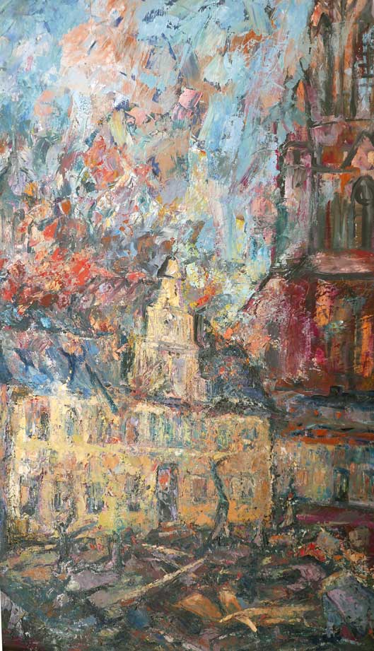 der Grosse Zyklus vom brennenden den Demmin soll nun ins Rathaus kommen, als Leihgabe zusammen und am zentralen Ort. Wie es sein muss.