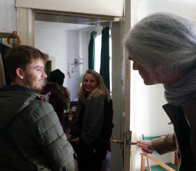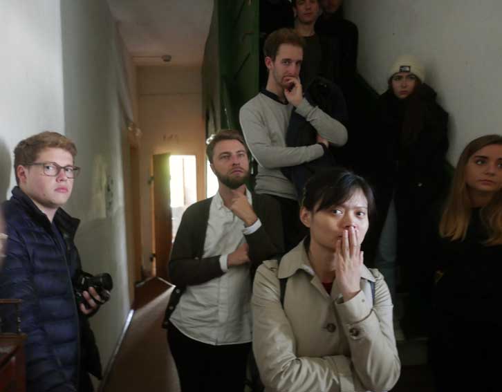 die ersten Studenten aus Stuttgart m it berliner Führungen /Chipperf. in N. angekommen
