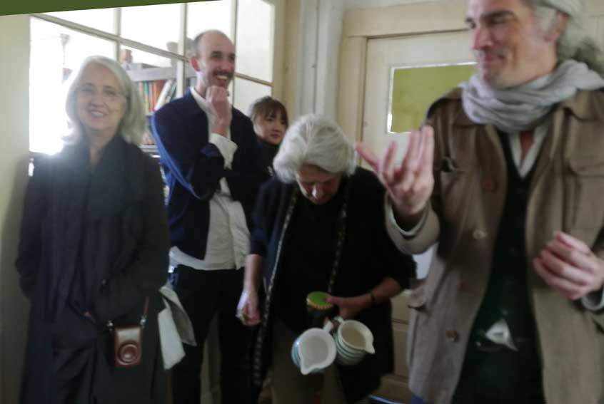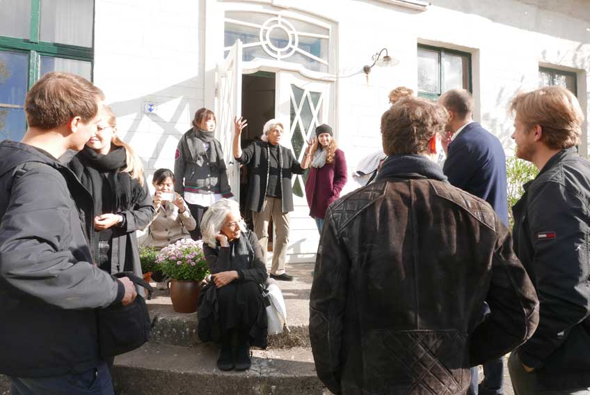ein Teil geht zur Kirche, dem Turm über das Land zu schauen, und die anderen in die Halle zu sehen, was an Bildern der Geschichte des Hsues wieder und von den Prospekten aus Berlin, dem Schloss 45, und aus Demmin, dem Sommer am Markt 2015 abzu lesen ist.
