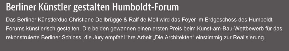 Errichten eine Stiftung zur Erinnerung der geistigen Güter in der verlorenen Kunst. Erhalten die Chance in der Mitte das Haus dazu wieder zu errichten - und was machen sie darin. Raubkunst der Welt, bescheiden vom Stadtrand in die Mitte zu installieren- nein vor allen anderen zu präsentieren in einem sogen. demokratischen Verwaltungsakt. Das Land wälzt sich unten dem Ansturm der Geflohenen aus anderen Kontinenten. Aber im Inneren längst okkupiert und merken es nicht. Als Kern des Kontinents wäre von allen und für alle eben hier viel für un von uns zu tun. Gerade hier. Und das geht in der Kern der Dinge.
