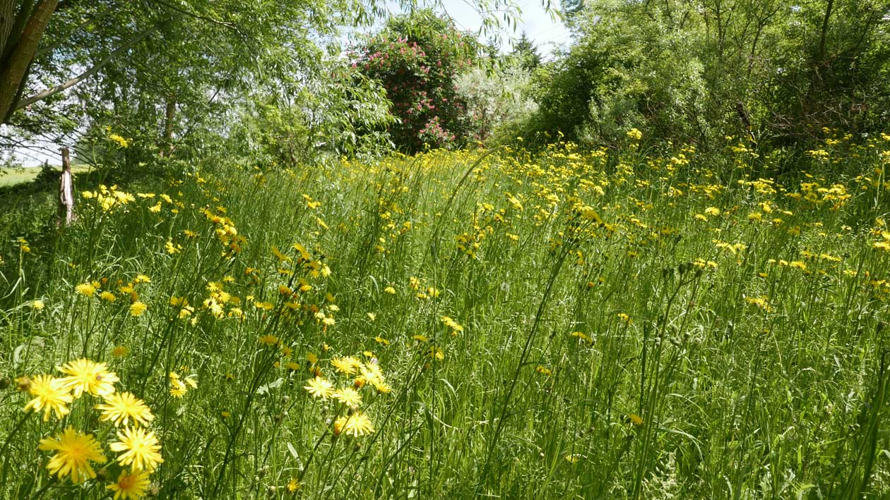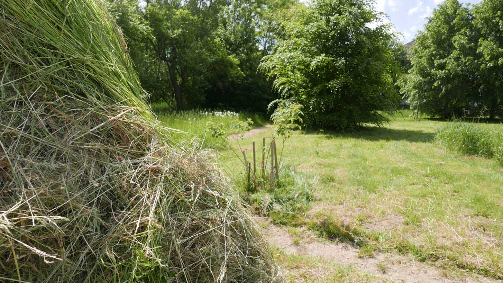 Auch wenn das Heu keiner mehr nimmt, und sie nur Kraftfutter wollen oder in feuchte Ballen gepressestes Gras. Wohin also mit dem vielen Heu aus den Wiesen ums Haus im Park wieder befreit.