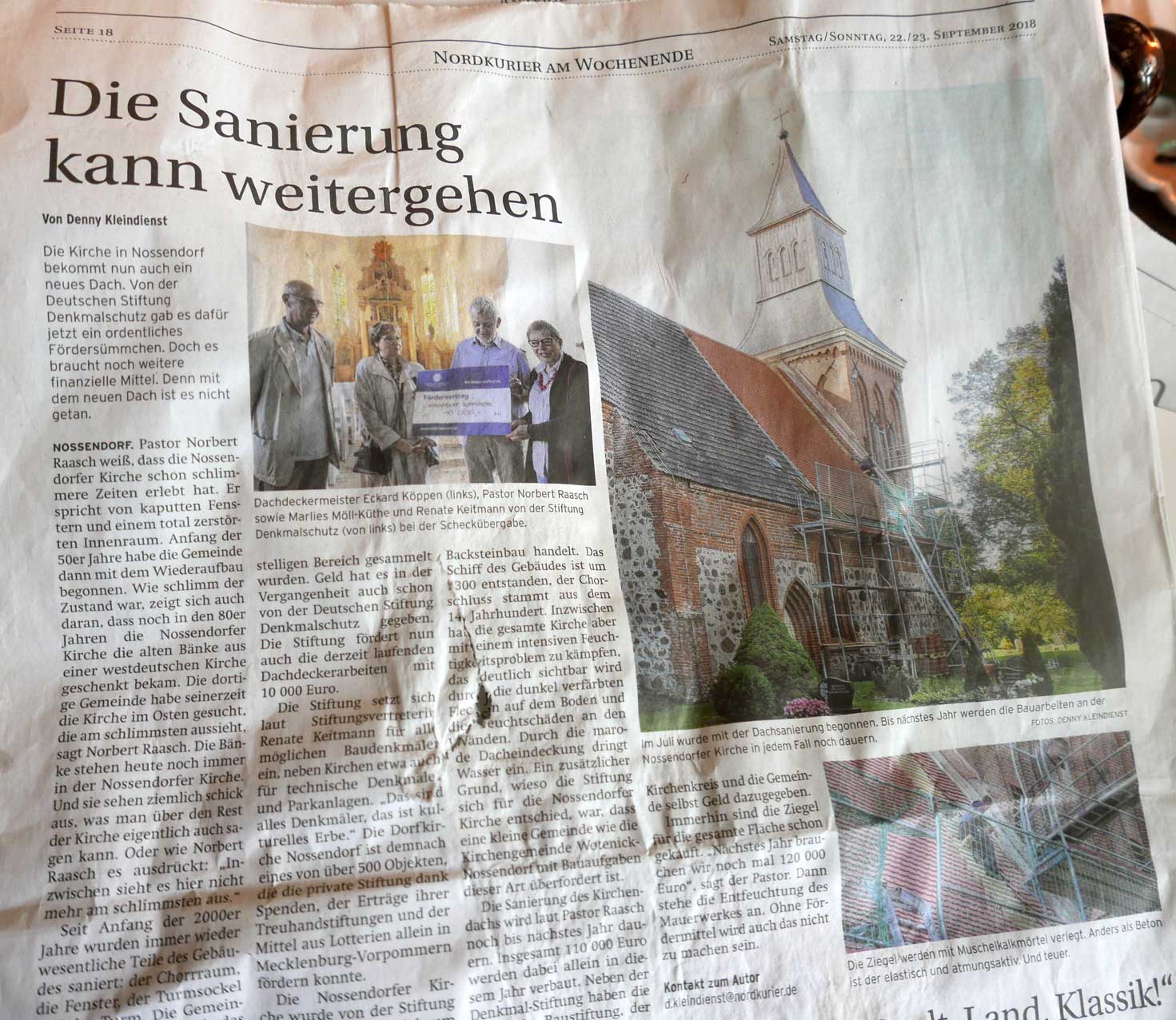 In Nossendorf wird die Orgel kommen, im nächsten Jahr, zu erzählen wie alles anfing 2004 und, trotz schlimmer Einbrüche, selbst der Turm gelang.