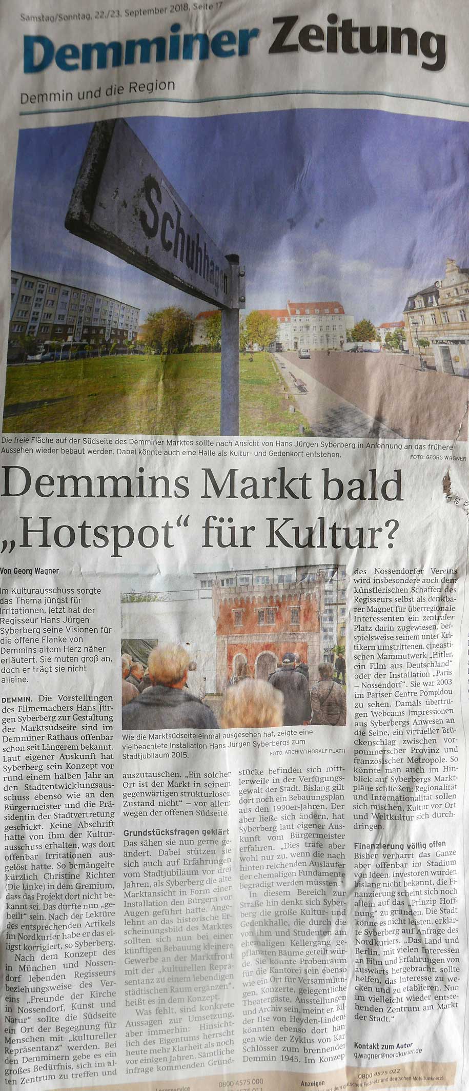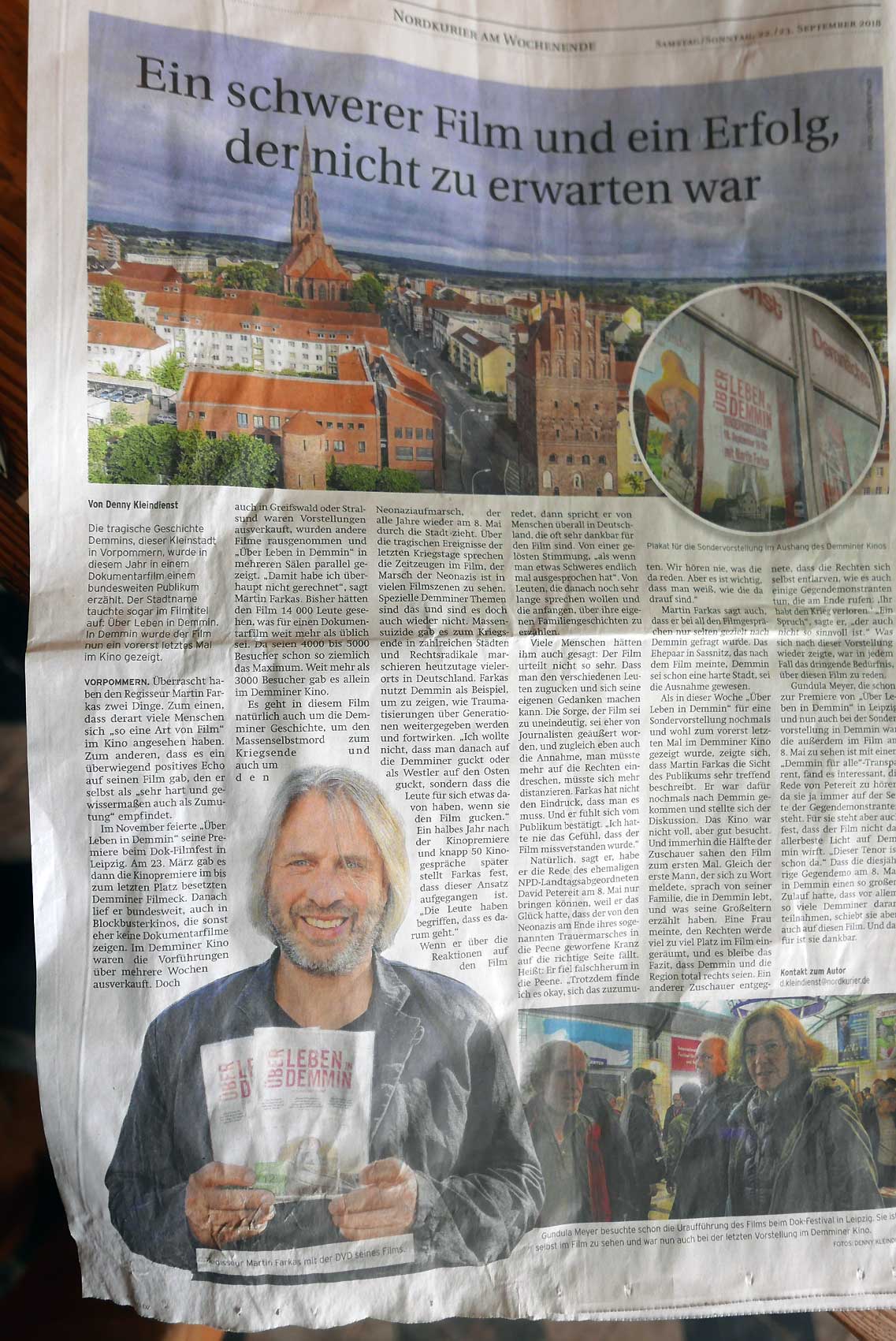 Nun ist sie auch eine Demminerin. Im Buch zum Film über sie dokumentiert, alle Orkane überwindend mit Lachen. Auch Karl Schlösser noch dabei. Und wenn wir dort das Programm dazu machen werden, mit Ehrenrunde für alle auf offenem Markt. Nach oben offen.