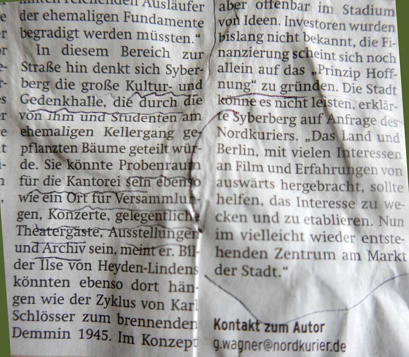 Auch das Haus Demmin ist mit zu denken. Historisch und als besonderer Ort der Nähe, nach 1989 geschenkt und nie angenommen.