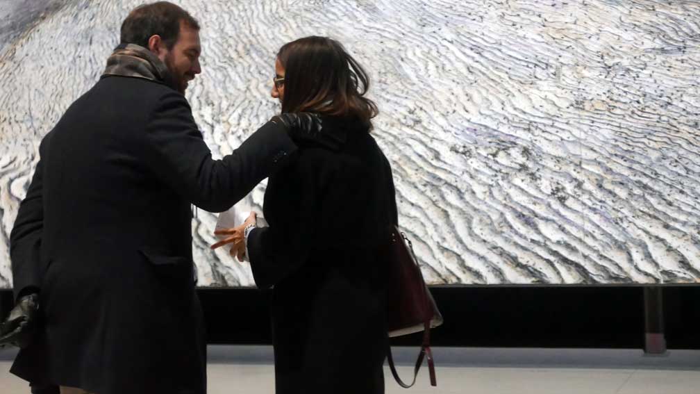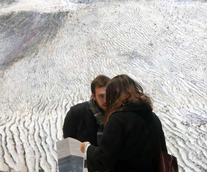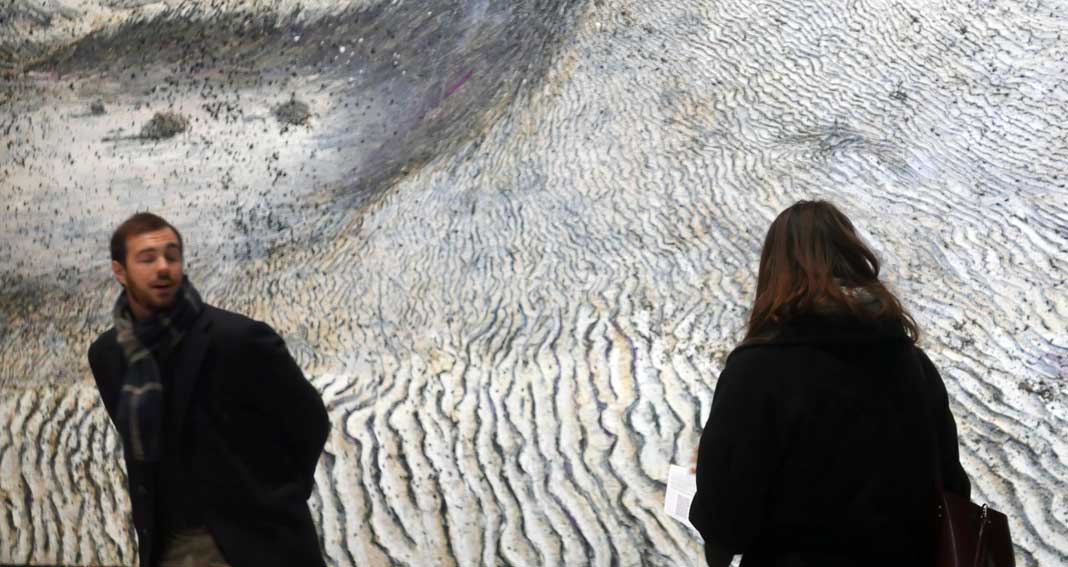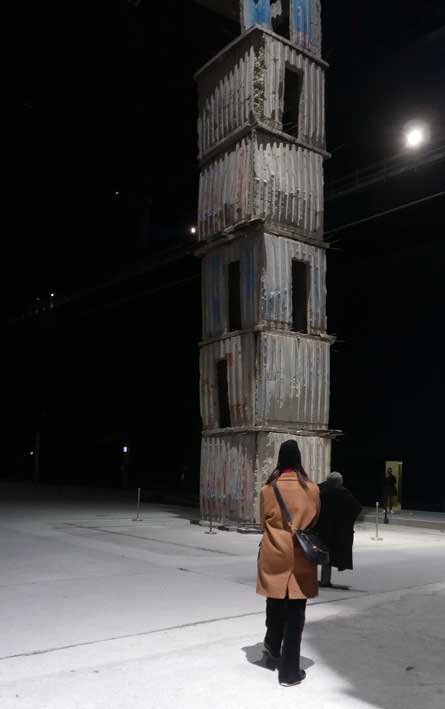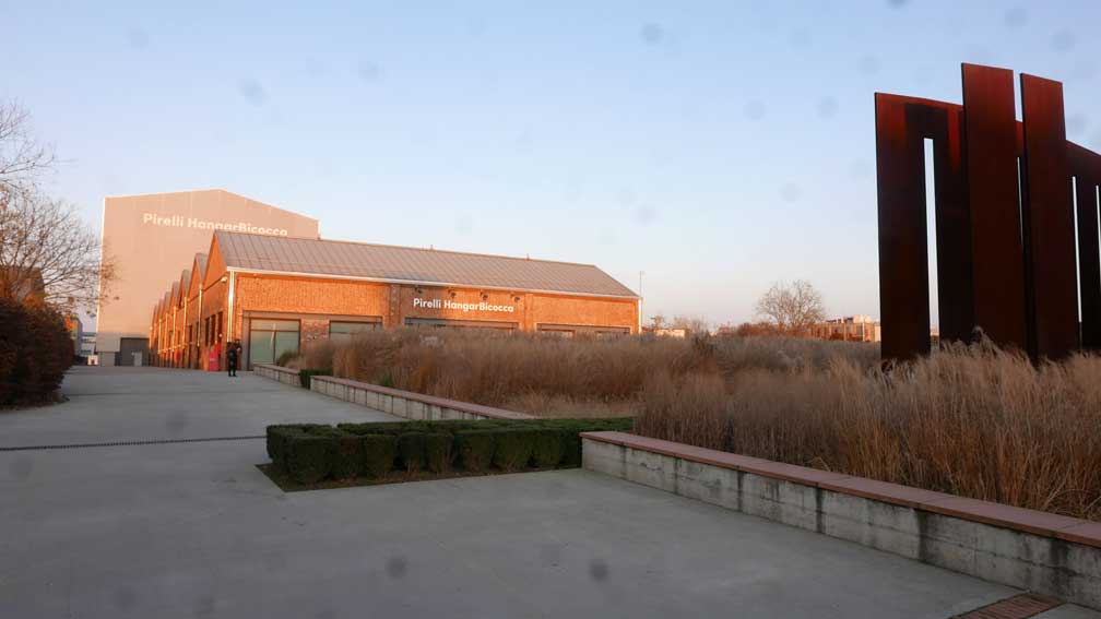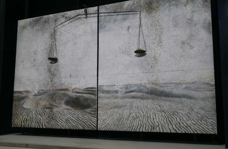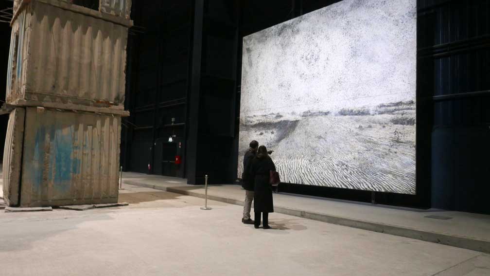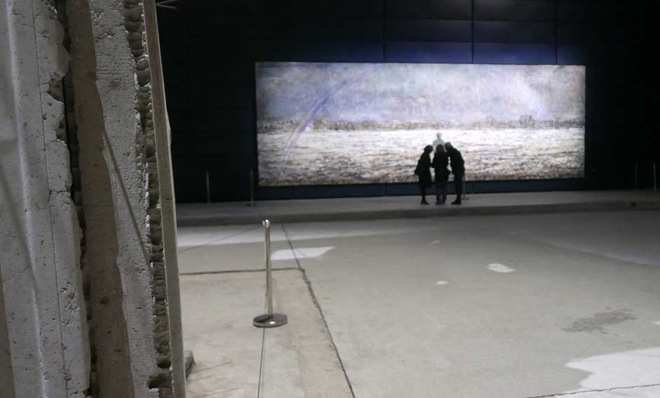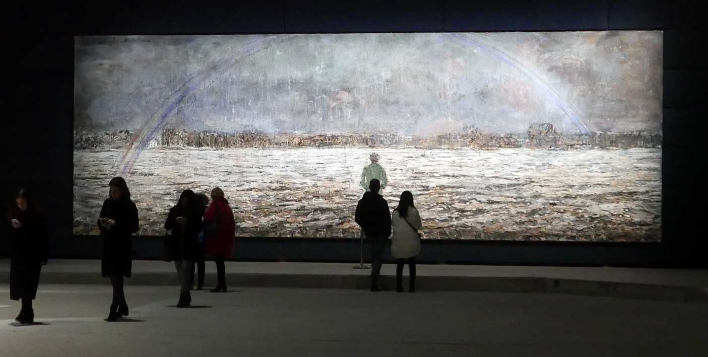 Eine Halle mit Zwischen Wänden gehägt und darin Anselm Kiefer mit seinen Türmen.