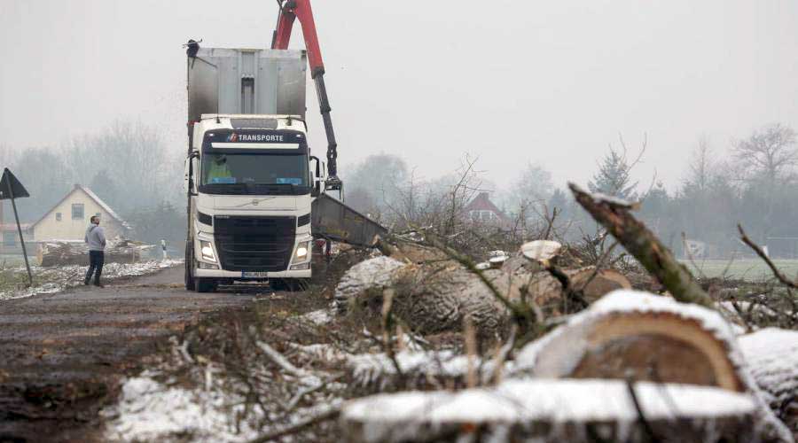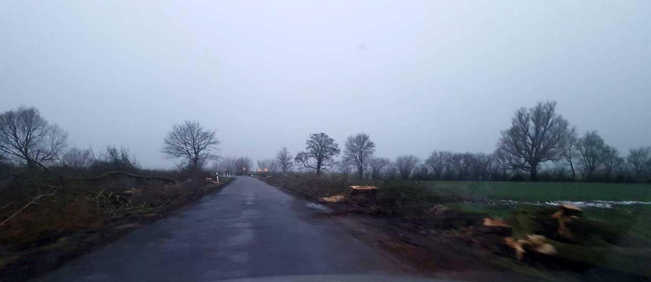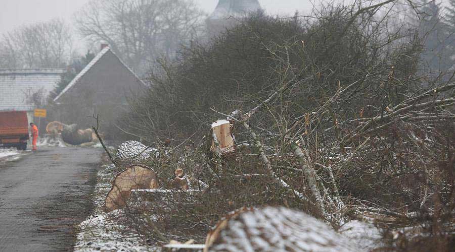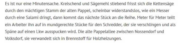 die alte Pappelalle zwischen Nossendorfund Volksdortf verwandelt sich in Brennstoff für Holzheizungen.