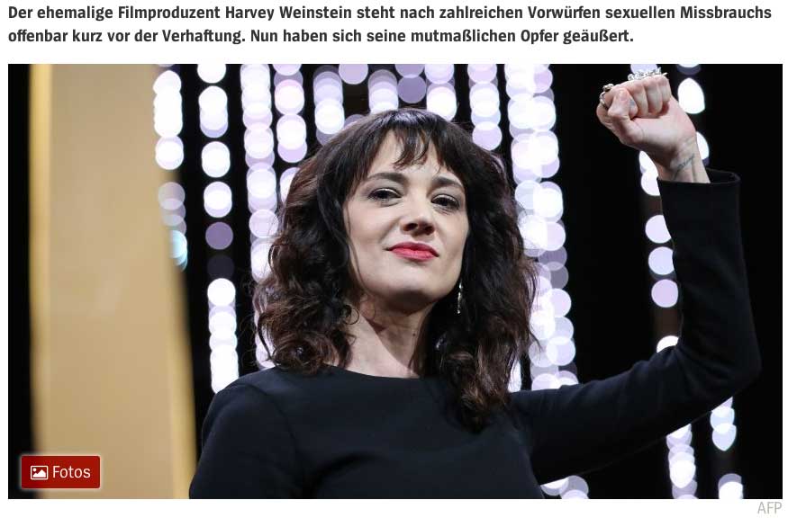 "Im Jahr 1997 wurde ich in Cannes von Harvey Weinstein vergewaltigt. Ich war 21 Jahre alt. Dieses Festival war sein Jagdrevier. Ich mšchte eine Vorhersage machen: Man wird Harvey Weinstein hier niemals wieder willkommen hei§en. Er wird in Schande leben, von einer Gemeinschaft der Filmschaffenden gemieden, die ihn einst umarmt und seine Verbrechen gedeckt hat.