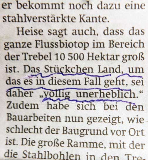Sie sagen. sie hätten eine Unterhaltungspflicht des Flusses und sehen gar nicht, dass der Fluss sie nicht braucht, breit und ruhig, wenn man ihn nur lässt, sich selbst erneuernd. Schon immer.
