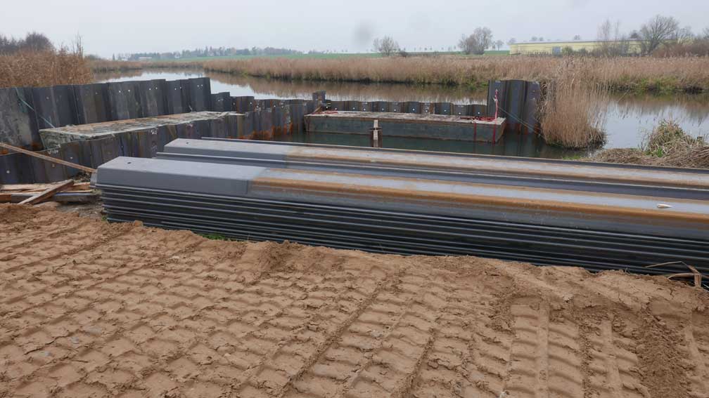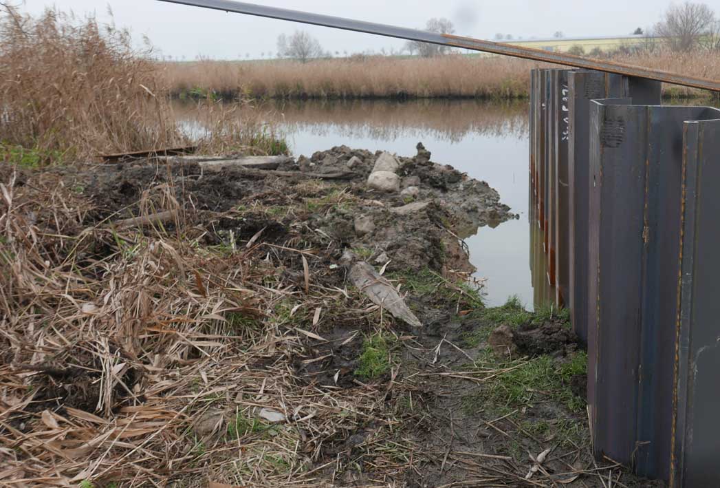 "was an Strand einmal da war ist ins Gewässer gespült worde. Nun gibt es also den Strand zurück und er belommt noch eine stahlverstärkte Kante dazu."