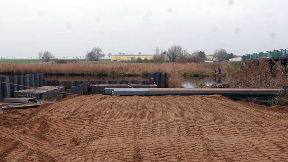der Kranfahrer, für den das alles gemacht ist, wenn er bisher noch nicht ins Wasser fliel,weil zu flach, der erhält nun die richtige Fallhöhe ohne Geländer. Und Sicherheitsmassnahmen für 240 000 Euro und bei jedem Dorf eine solche Anlage .