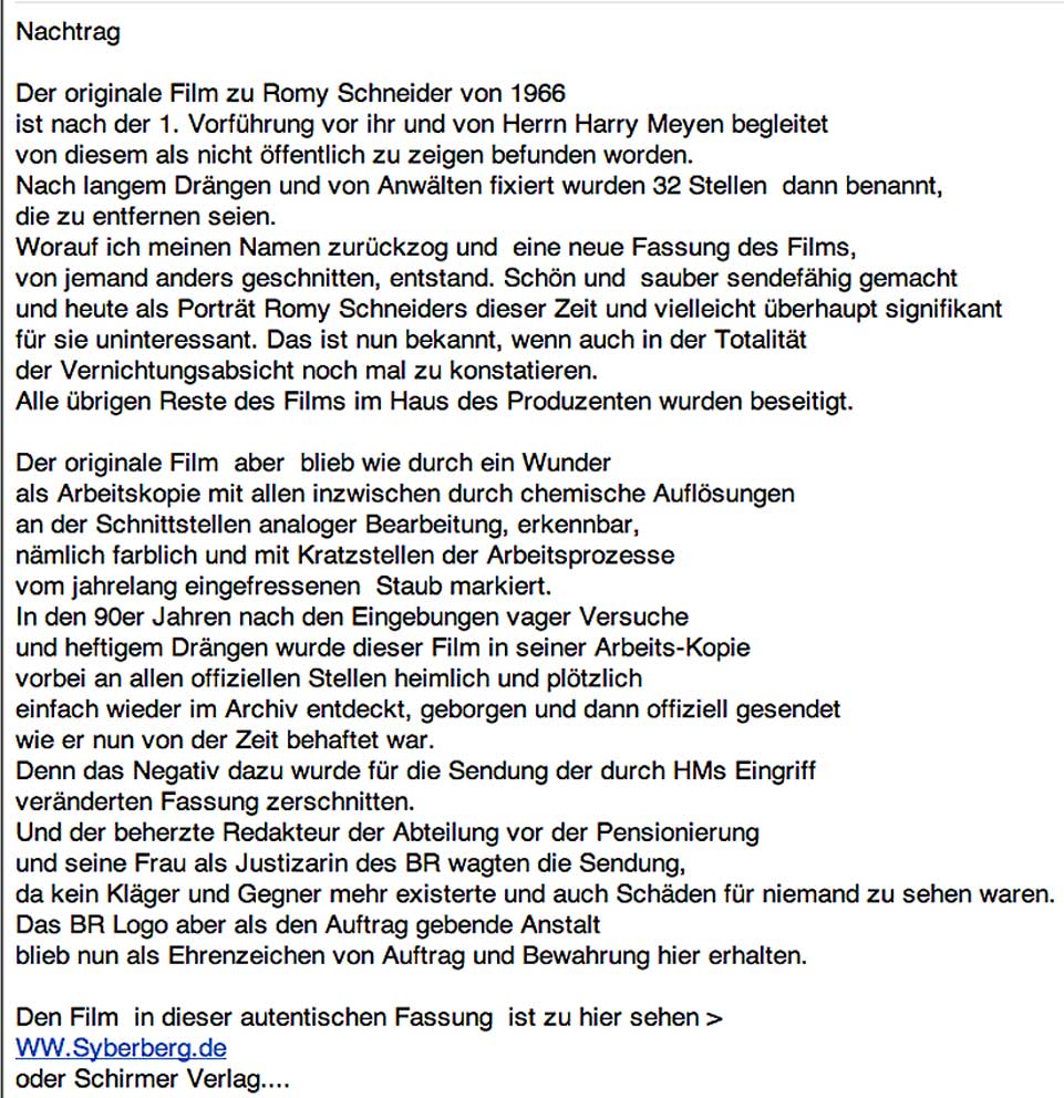 diese Romy aber ist ein fake als Film nicht ihrer Worte und im Bild nicht sie selbst. Was für ein Leben dann.