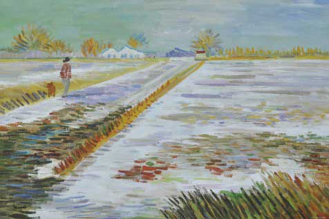 Das Weiße Haus hatte sich im vergangenen Sommer an das Guggenheim Museum gewandt und darum gebeten, Vincent von Goghs „Landschaft mit Schnee“ aus dem Jahre 1888 für den Wohnbereich des US-Präsidenten und First Lady Melania auszuleihen. Das Bild zeigt einen Mann mit einem schwarzen Hut, der mit einem Hund einen Weg in Arles (Frankreich) entlanggeht.