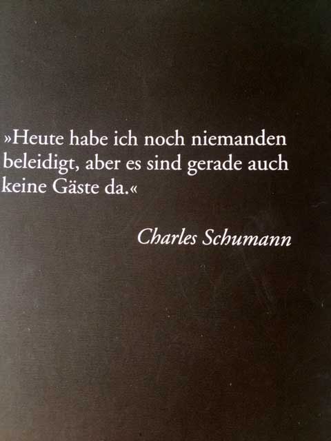 Ein leeres Wirtshaus: "Zum Jedermann". Schwere, dunkle Holztische. Auf einigen Tischen stehen die Stühle oben, auf anderen nicht. In der Mitte der Wirtschaft sitzt allein an seinem Stammtisch der Wirt, im Sonntagsstaat, wie man so sagt. Kein Gast sonst weit und breit, kein Laut, nur der Wirt, der redet. Wie um sein Leben. Schimpft. Über unverschämte Gäste. Über die Unkultivierten, die Schmarotzer und die Billigesser. Und kaum ein Gast hat noch Sinn für die große Küchenkunst