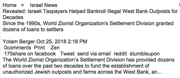 Israelische Steuerzahler halfen, illegale Outposts der West Bank fŸr Jahrzehnte zu finanzieren