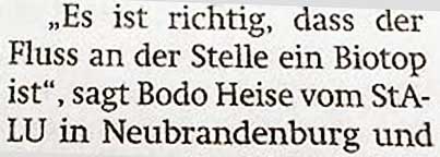 Die Trebel und ihr Biotop. Zum Biotop gehört per Defintion seine durch das Umweltamt geschützte Unantastbarkeit.