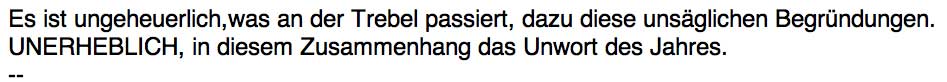 "Wenn diese bis auf Stock und Stumpf gesetzten Hecken aus nicht nur Schleen in diesem Herbst ausgefräst wurden, geschah das nicht von uns.Wir warens nicht." Man müsste dann die Bäume neu pflanzen und binnen 5 Jahren die Sträucher erneuern.