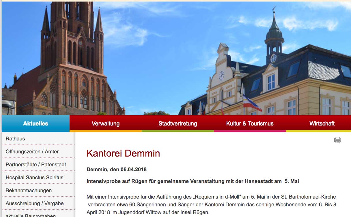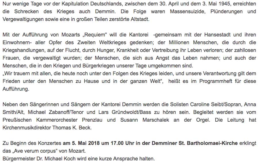 In den Ankündigungen der Stadt Demmin finden wir diesen Hinweis.