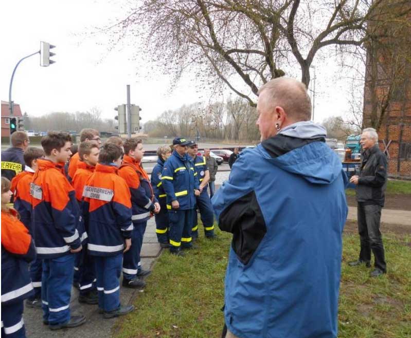 Und der Bürgermeister dankt den Helfern auch den Platz vorzubereiten für die Aufstellung der Figur Karl Schlössers am Sonnabend, den 28. April morgen. Ihm zum ehrenden Gedenken. Am westlichen Eingang der Stadt gleich an der Peene und der Brücke