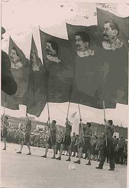 1951 die Leere nach dem Abriss Ulbrichts und die Aufmärsche der Massen mit den Fahnen Stalins(Weltfestspiele der Jugend, Foto HJS).