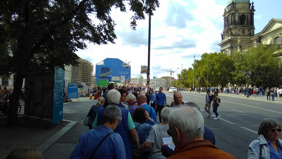 Das Schloss in Berlin, nun ohne Gerüste, wird zum ersten Mal zugänglich, in Teilen. Und sie alle kommen in Scharen.