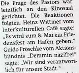Nach disem Film der Demminer vor den Demminern frei geworden wäre Ruhe eigentlich jztzt erstes Gebot. Und der Stadt ein neues Gesicht zu geben auch am Markt. Dem alten gemäss.