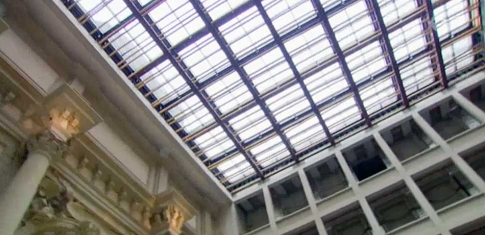 realen Sterilität des Raum-Designs durch die Verlagerung eines abseitigen Museumskomplexes in einen dafür ungeeigneten neuen zentralen Rahmen.