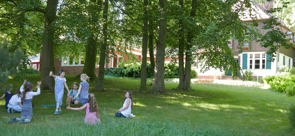 und auf dem Wege zum Wasser auf der anderen Seite wie Kinder-Garten- Geburtstag vor dem Haus