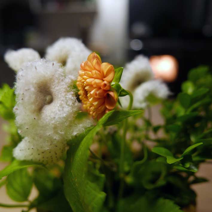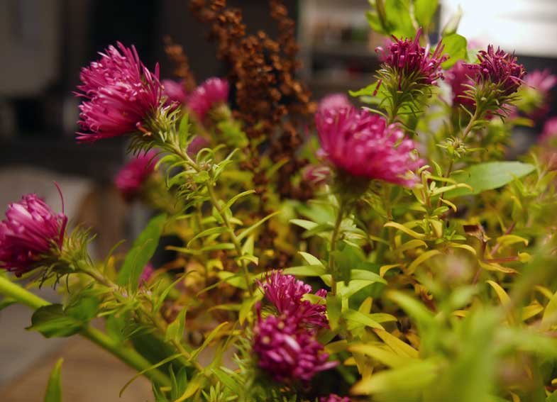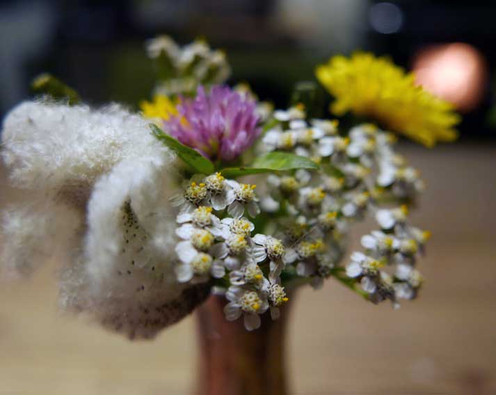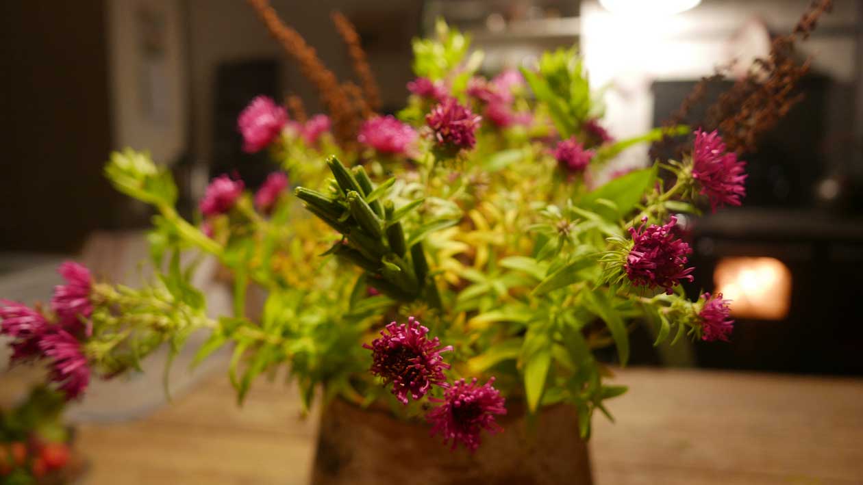 letzte Blumen des Gartens und der Wiesen kommen rein sich zu wäremen in der Nacht