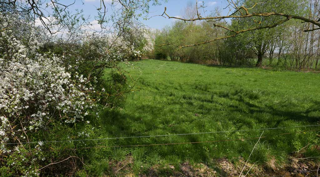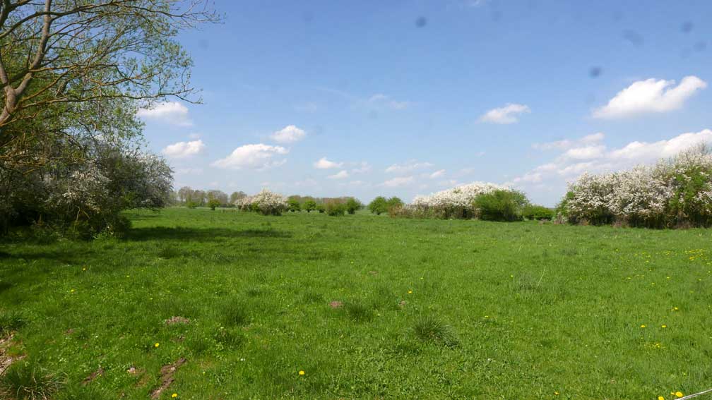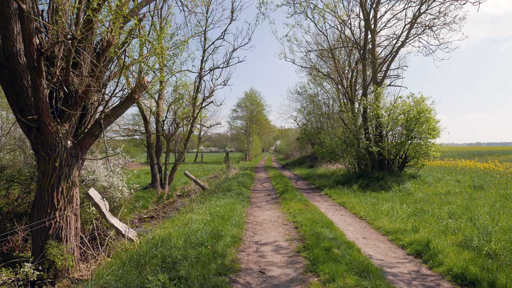 er führt an Wiese links und Äcker rechts ursprünglich beidseitig entlang zum Wald.