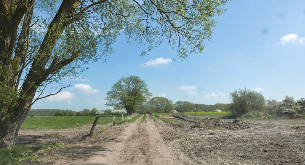 Und das ist dem Besitzer der Äcker ein Dorn im Auge, denn da liegen Rohre, die seine Äcker entwässern, und die Wurzeln gehen in die Rohre. Der Weg aber gehört der Gemeinde. Und nun klagt er wegen 5 Hektar Erntverlust durch Nässe. Die Bäume also am Acker müssen weg und so sind sie es auch gerade der nächst fällig. Vor 150 Jahren wurden so die Felder zugänglich gemacht undlebten in Ruhe nir der Wegen zu ihnen und hindurch.