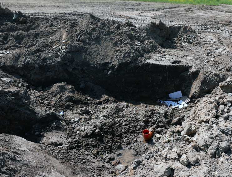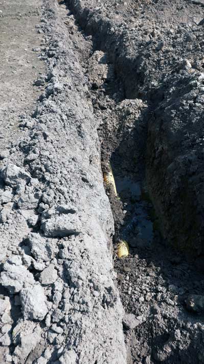 die alten Rohre aus Ton werden nun durch solche aus Plastik ersetzt. Unter den Feldern. Überall wo Ersatz nötig wird.