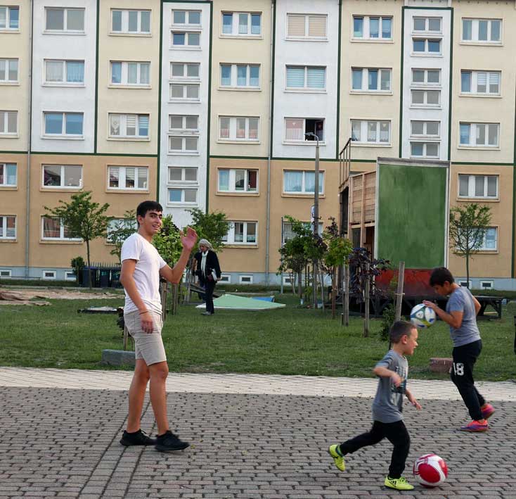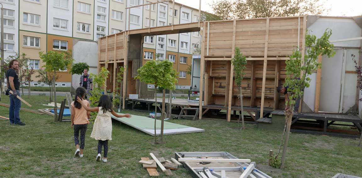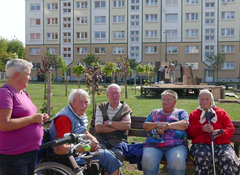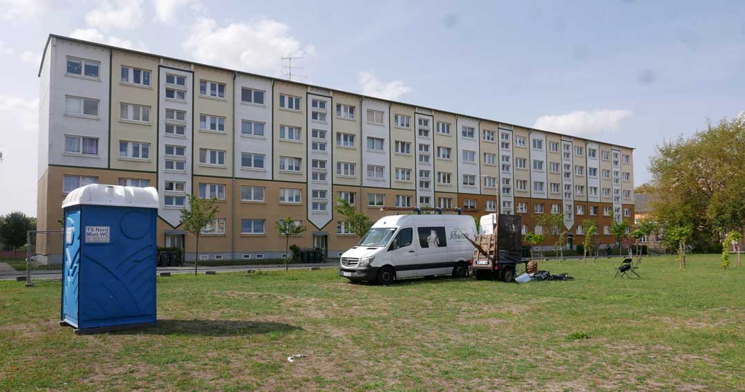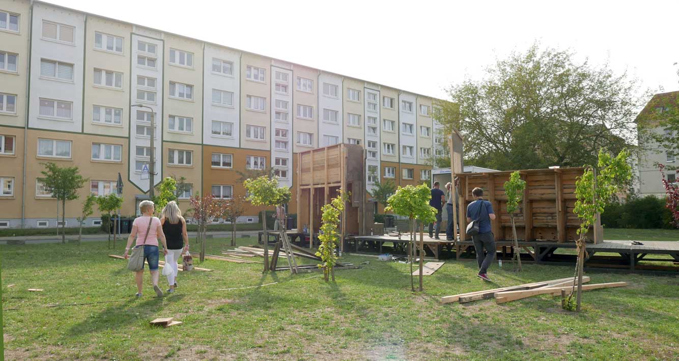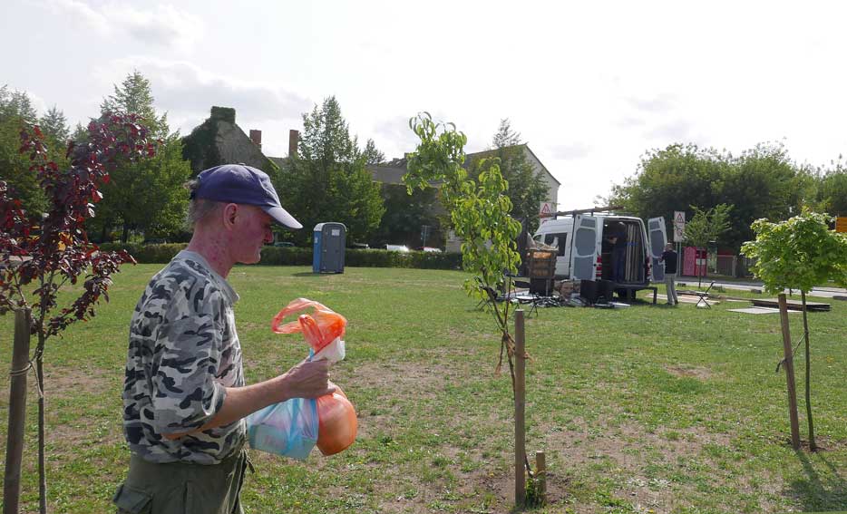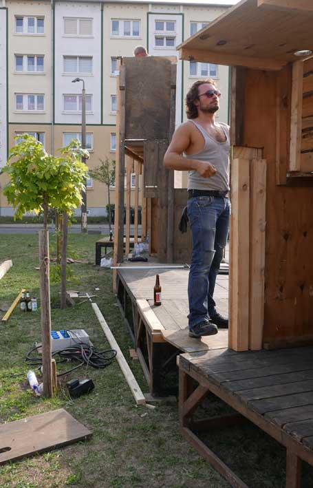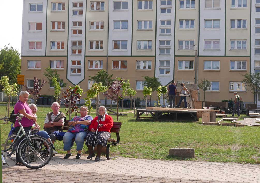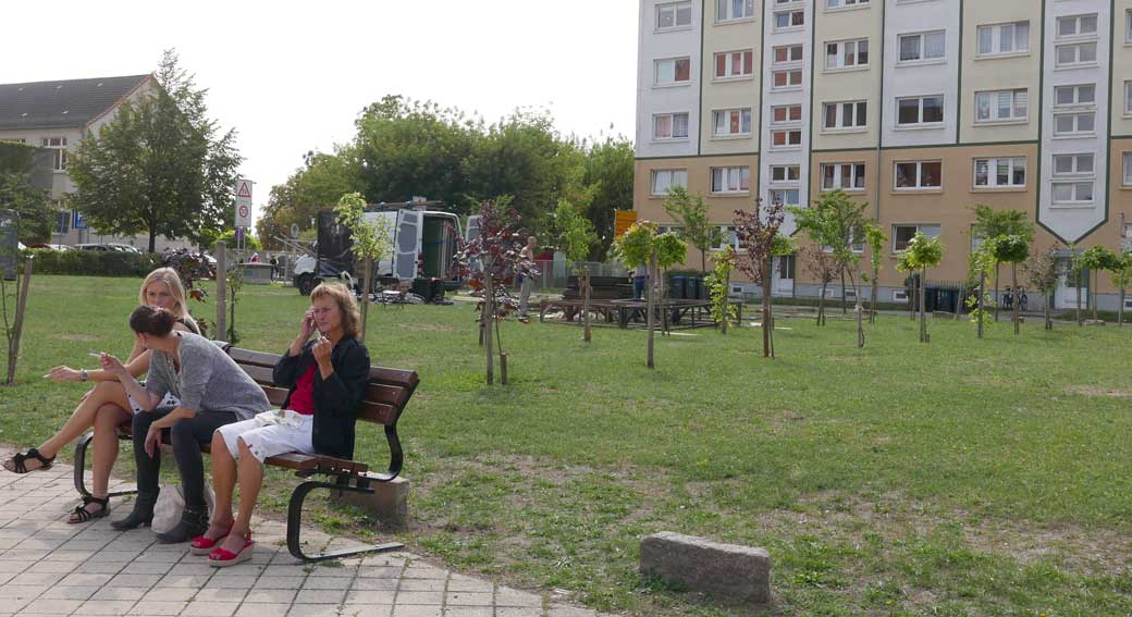 eben noch die Bäume dort gepflanzt, dass da was ist in die Leere, und die Menschen die alten Wege wieder wissen, quer durch ud über die Tioten. Jetzt im Wege, der Weg? Nein, einbauen. Das Neue wagen.
