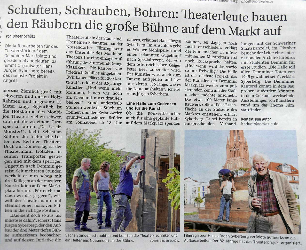 werden wir damit Aufmerksamkeit erreichen. Theater in Demmin. Viel dort Die 3 Flüsse, der Hafen, und die Landwirtschaft, die Ulanen früher, aber Theater. Kino ja und Filme, aber ohne Haus wo und Leute wie.